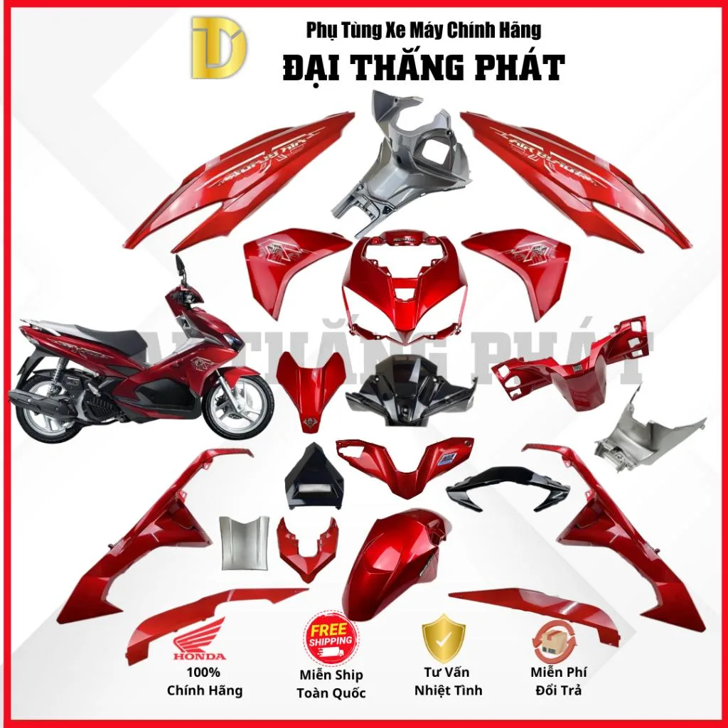 (Có bán lẻ) Dàn áo xe Air Blade 125cc (2018) K66 màu Đỏ Bạc R340 chính hãng Honda